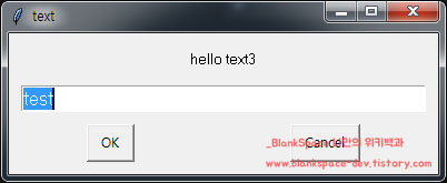 이 함수도 마찬가지로, OK 버튼을 눌러야만 입력한 내용이 반환됩니다. Cancel 버튼을 누르면 None이라는 내용이 반환됩니다.