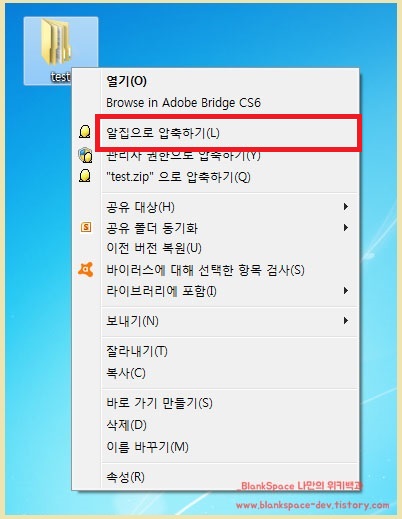 압축 프로그램이 중요한 것이므로, 운영체제는 달라도 상관 없습니다. 다만, 알집으로 따라하시면 더욱 쉽게 따라하실 수 있으리라 생각합니다.