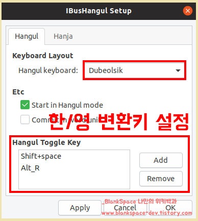 혹시나, 우분투 16.04 버전에서 한/영 키보드를 설정하는 방법을 모르시는 분은 아래 글을 참고해주세요.