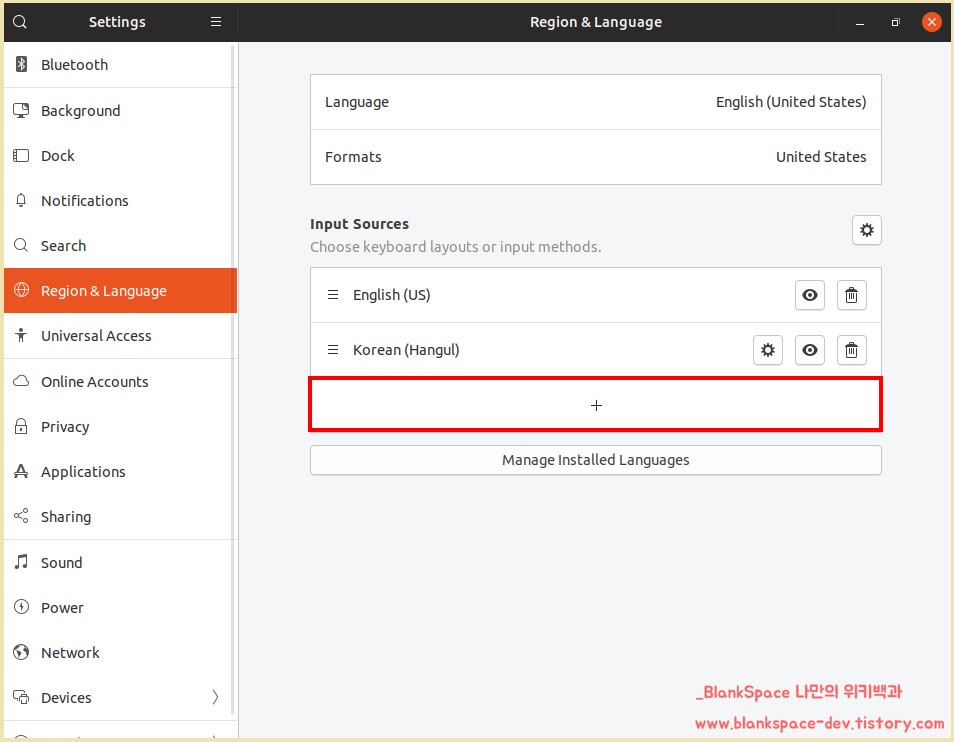 그래서, 우분투 19.04를 설치하자 마자, 바로 한글 설정을 하기로 하였습니다. 저의 경우에는 16.04에서 바로 19.04로 갈아탄 케이스인데, 19.04에서는 별 다른 프로그램 설치 없이 한글 설정을 할 수 있다는 점이 신기하였습니다.