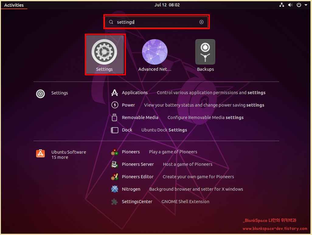 여기서, settings를 검색하면 해당 아이콘이 검색되는 것을 확인할 수 있을거에요.