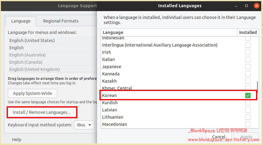 위와 같이 설치를 하시면 한글이 제대로 설치되실 것입니다. (저의 경우에는 해결하였는데, 혹시나 문제가 있으시면 댓글 남겨주세요.)