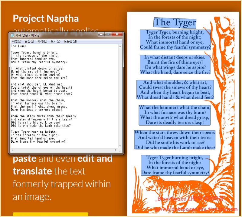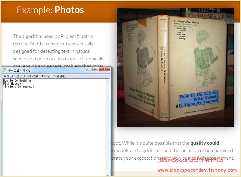 아무 인터넷 주소에서 확인하셔도 상관 없지만, Project Naptha 에서는 친절하게 데모 사이트도 제공하고 있습니다.