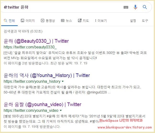 저는 트위터에서 윤하라는 키워드로 검색해봤습니다. 아래 이미지를 참고해주세요.