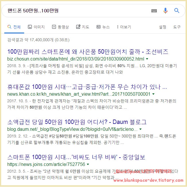 위의 방법도 나쁘지는 않습니다. 50만원 대의 핸드폰들이 검색결과로 나올테니 말입니다.
