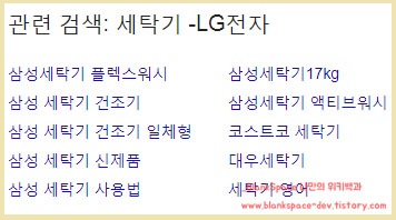 저는 예제로 세탁기라는 키워드에서 LG전자라는 키워드를 제외한 결과를 얻을 수 있도록 해봤습니다.
