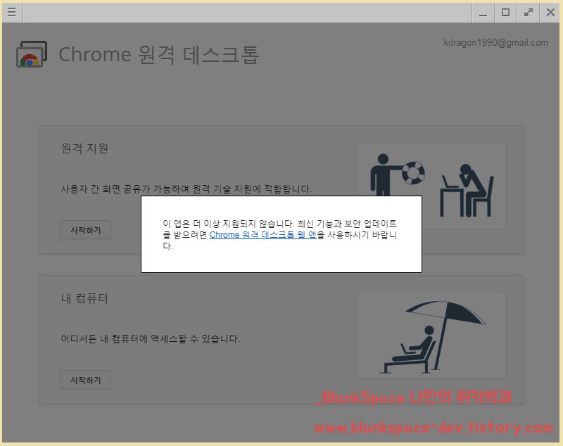 이전 크롬 원격 데스크톱 방법은 더 이상 지원하지 않는다? |