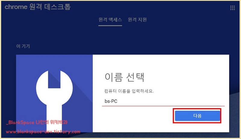 먼저, 아래처럼 원격으로 접속할 컴퓨터의 이름(별명)을 적어주세요.