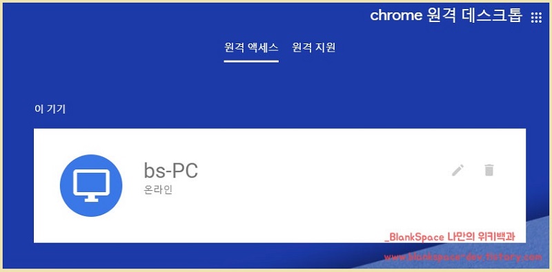 아래 기기의 이름 네모 상자를 누르시면, 원격으로 접속할 수 있습니다.