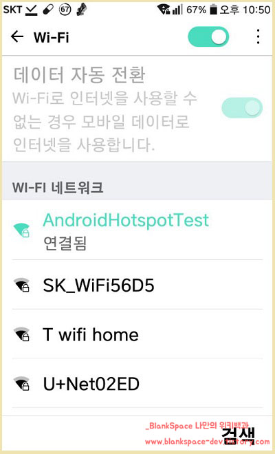 이것은 평소 WIFI를 사용하는 방법과 같습니다. 다들, 집에서는 공유기를 사용하실텐데, 공유기 WIFI에 접속하는 것처럼 핫스팟 WIFI에 접속하시면 되겠습니다.