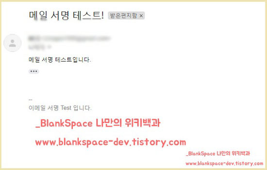 이제 모든 설정은 끝났습니다. 이메일에 제대로 적용되는지 확인해봐야겠죠?