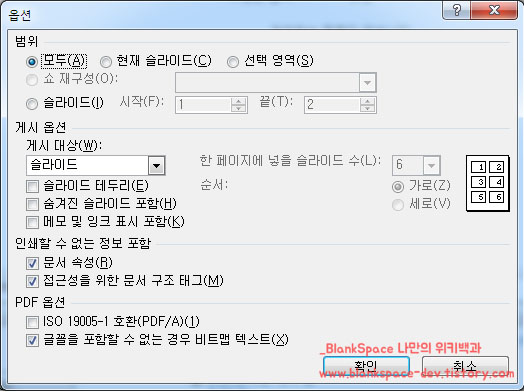 다음으로는 옵션을 눌러서 PDF에 관한 설정을 하시면 되겠습니다.