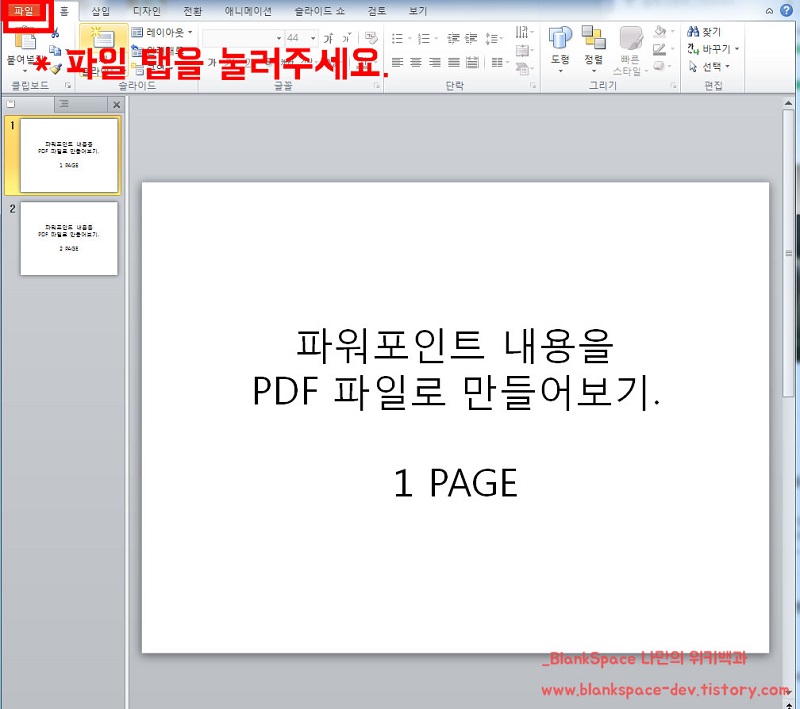 그럼, 바로 파워포인트 내용을 PDF 파일로 만드는 방법에 대해 설명하도록 하겠습니다.