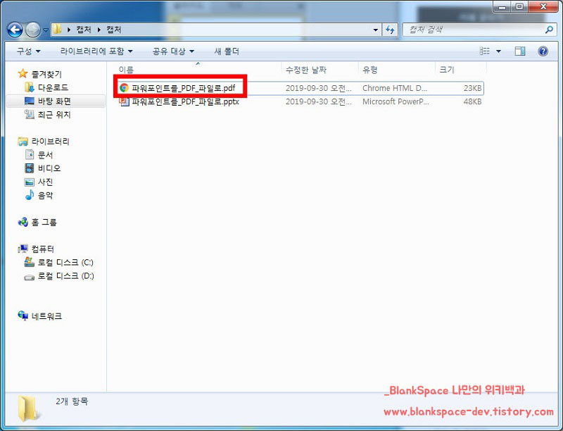 그러면, 아래처럼 pdf 확장자로 저장된 파일이 생성된 것을 볼 수 있을 것입니다.