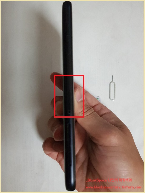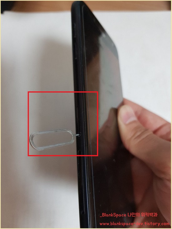이제, 유심칩을 갈아 끼기 위한 유심칩 서랍? 부분을 열어야 합니다.