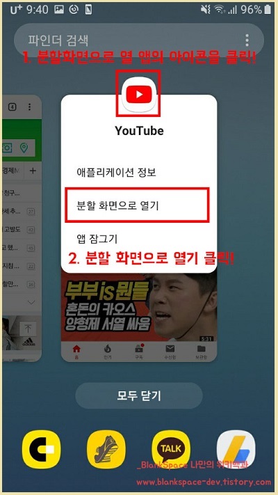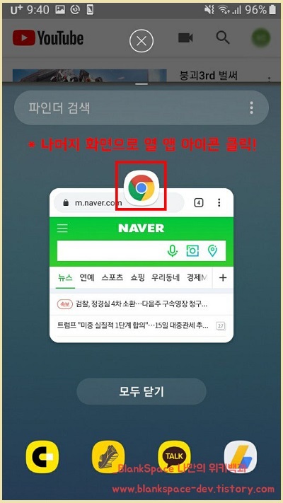 분할화면 기능의 주의점은 모든 앱이 분할화면으로 가능한 것은 아닙니다. 분할화면이 가능한 앱이 있으니, 이점 주의해주세요.