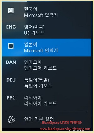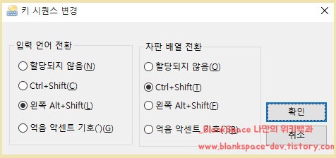 윈도우10에서는 입력 언어를 전환하기 위한 키 시퀀스로 다음과 같이 제공합니다.