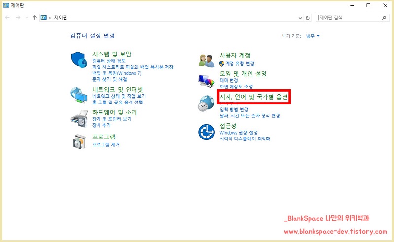여기서 시계, 언어 및 국가별 옵션을 눌러주세요.