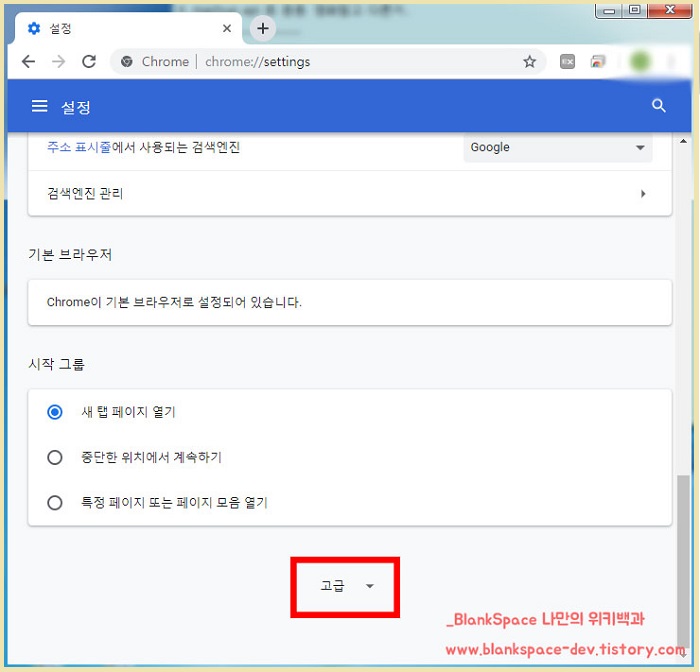 고급을 눌러서 펼치시면, 웹브라우저 설정이 더 나옵니다.