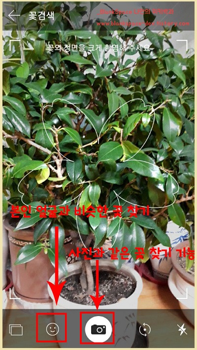 바로, 꽃을 카메라로 찍으면 꽃의 이름을 알려주는 기능입니다. 더불어, 자신의 얼굴을 찍으면 비슷한 꽃도 알려줍니다!