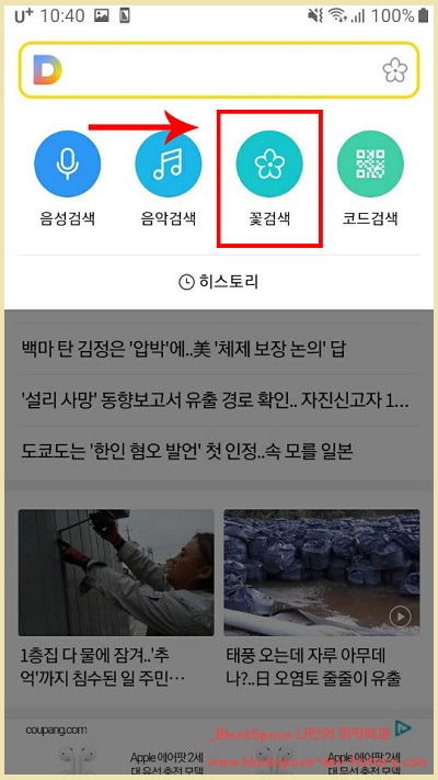 이 탭을 보시면, 음성검색, 음악검색, 꽃검색, 코드검색이 나오는데요.