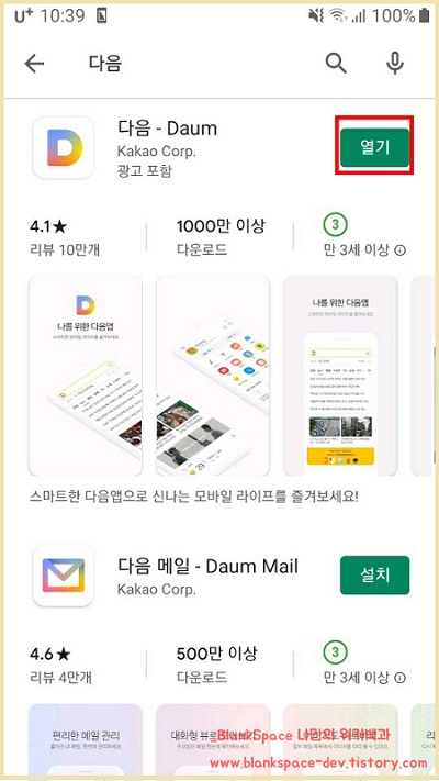 아래처럼 다음 앱을 설치 후, 앱을 열어주시면 되겠습니다.
