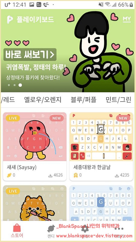 예전에 한참 카카오톡의 테마를 사제로 변경했던 경험이 있어서, 키보드 테마도 변경해보면 어떨까하여 찾아보던 중 다음과 같은 앱을 찾았습니다.