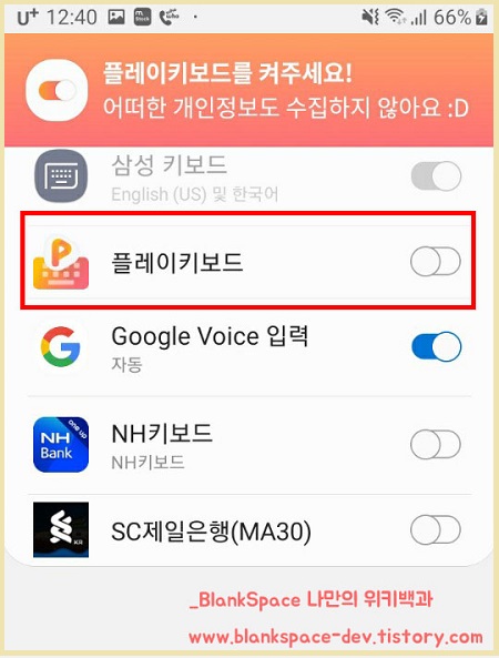 저는 플레이키보드 앱을 이용하여 키보드 테마를 변경해보았습니다.