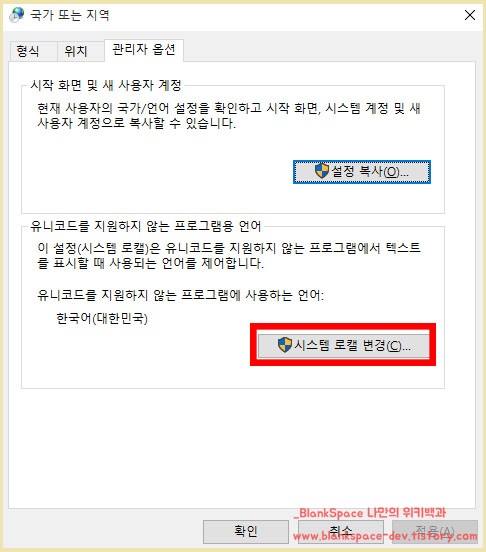 이상으로 윈도우10에서 시스템 로캘을 변경하는 방법이었습니다.