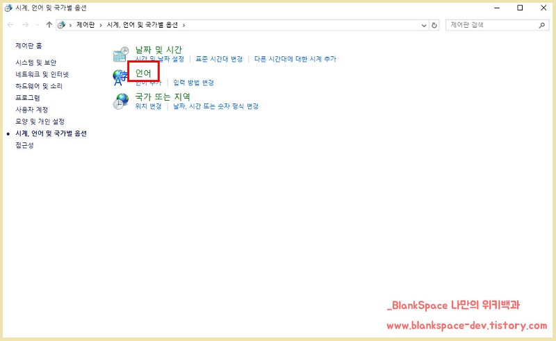 시간 및 언어 창이 뜨는 것을 확인할 수 있을 거예요.