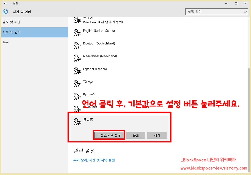 이상으로 윈도우10에서 시스템언어를 변경하는 방법에 대한 포스팅을 마치도록 하겠습니다.