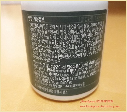 - 비오틴 : 3,000 ug를 함유하여, 기준치 함량의 10,000%라고 하네요.