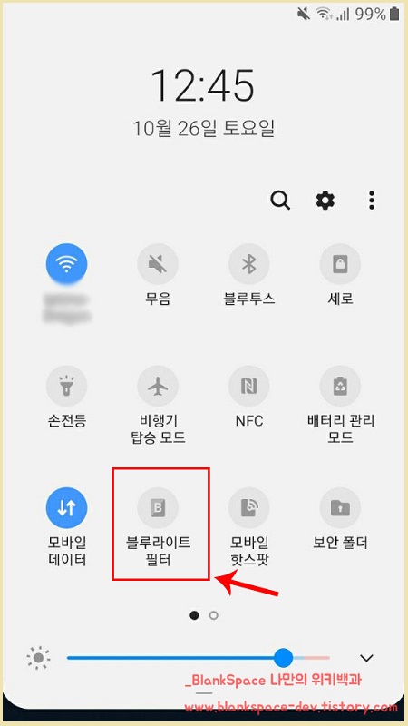 예전 스마트폰에서는 보지 못했던 것 같은데, 최근 삼성 스마트폰에서는 블루라이트 차단 기능을 제공합니다.