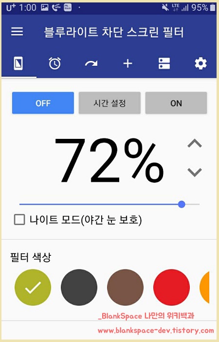 제가 쓰고 있는 앱은 블루라이트 차단 이라는 앱입니다.