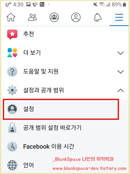 아래로 드래그하시면, 아래처럼 설정 이라는 탭이 보이실 것입니다.