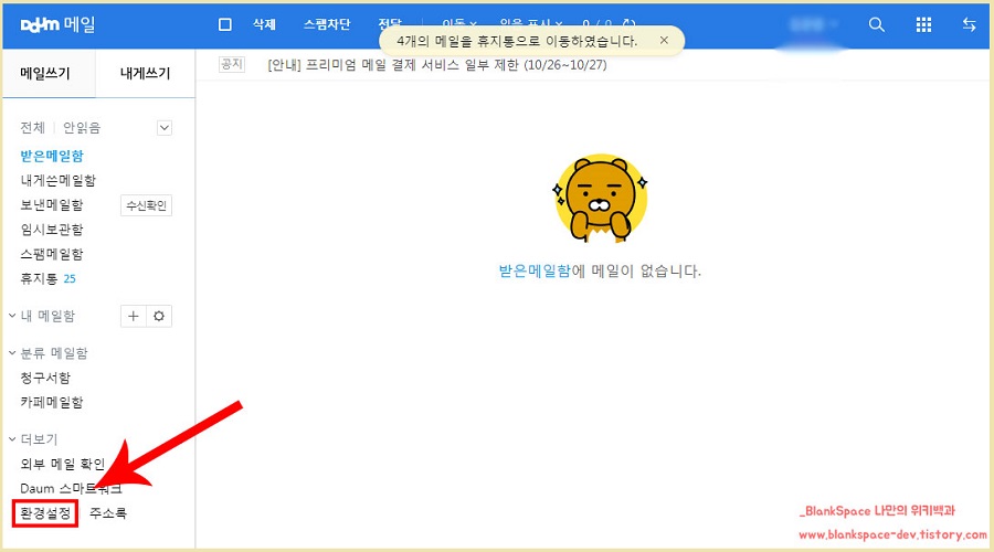 사실, 부재중 자동 응답 기능은 다음 메일이 제일 좋은 것 같습니다. 뭐랄까, 카카오 서비스와 통합하면서, 대체로 서비스들이 세부적인 부분까지 생각하여 만든 것 같더라고요.