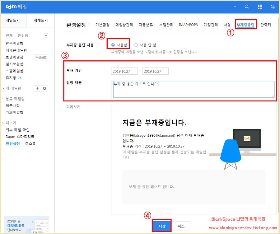 이상으로 다음 부재중 자동응답 기능에 대한 포스팅을 마치도록 하겠습니다.