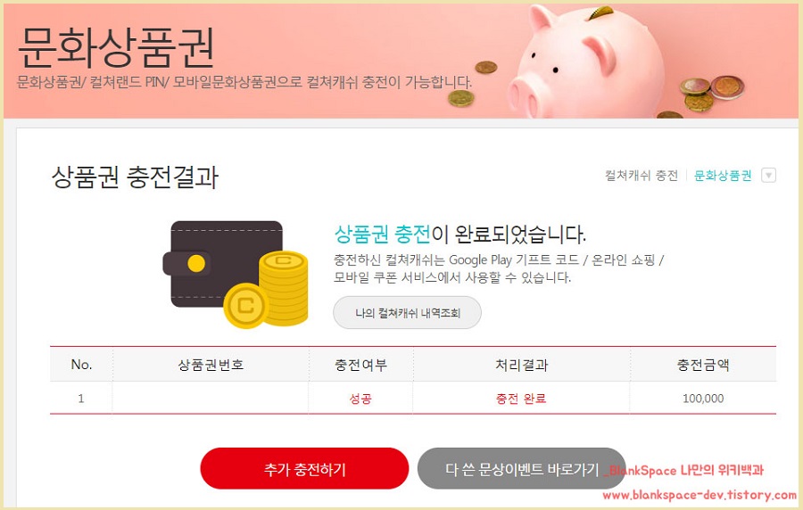 그럼, 문화상품권 충전이 끝난 것입니다. 굉장히 간단하죠?