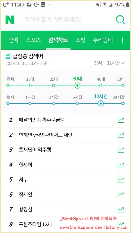 이제, 새로운 실시간 검색어 화면을 봐야겠죠?