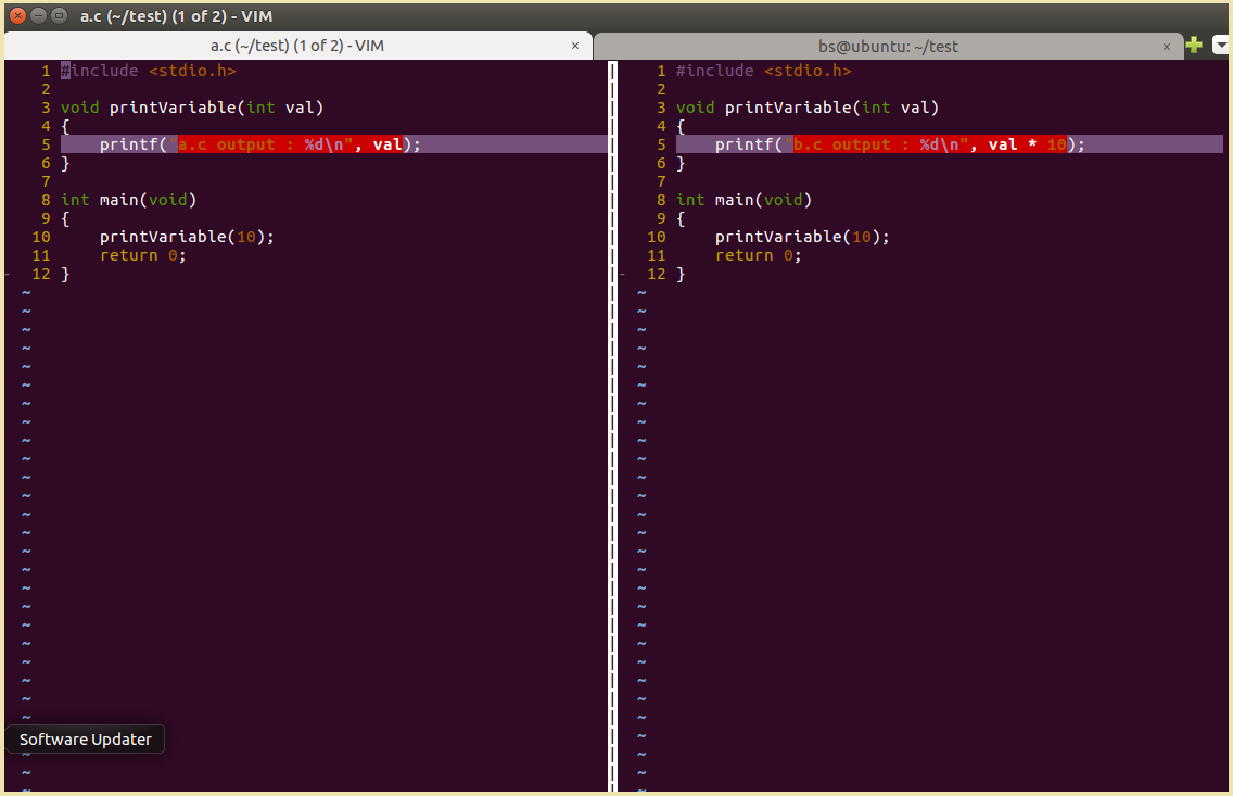vimdiff로 파일을 열어보자.