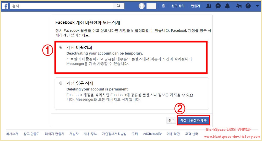 나중에 페이스북 계정을 탈퇴만 하지 않는다면, 다시 활성화할 수도 있으므로 너무 신중하게 생각하지 않으셔도 됩니다.
