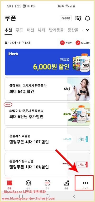 아래는 메인 화면입니다. 하단에 보시면, 점 세개로 이루어진 더보기 부분이 보이실거에요. 이 부분을 눌러주세요.