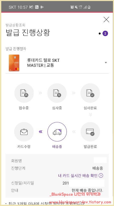 아래는 발급받은 상황입니다! 카드가 조만간 올 것 같네요. 위에서도 말했지만, 조만간 단종될 수도 있다는 소문이 돌기 때문에 발급받으시려면 빨리 받으시기 바랍니다.