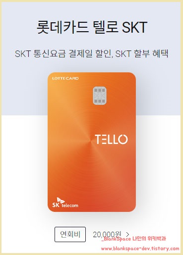 먼저, 롯데카드 텔로 SKT의 연회비는 20000원입니다.