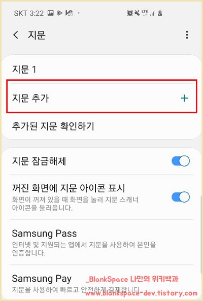 이번 포스팅에서는 갤럭시 스마트폰에 지문을 추가로 등록하는 방법에 대해 포스팅해보려고 합니다. S10 이후로는 아마 동일한 방법이 아닐까 생각합니다.