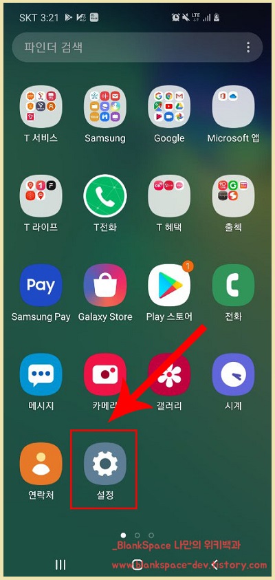 먼저, 갤럭시 스마트폰에서 메뉴화면으로메뉴 화면으로 전환해주세요. 보통, 바탕화면에서 화면을 위로 올리면 아래처럼 메뉴 화면으로 전환될 것입니다.