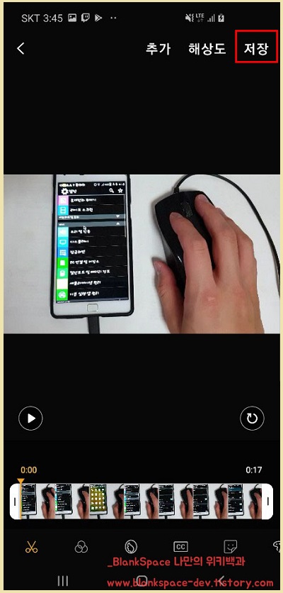 이제, 동영상을 저장하기 위해서 상단 오른편에 저장 부분을 눌러주세요.