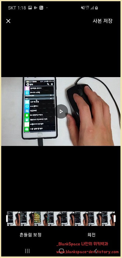 상단에 보이는 사본 저장을 눌러주세요. 그럼, 스마트폰에 아래처럼 회전된 동영상이 저장될 것입니다.