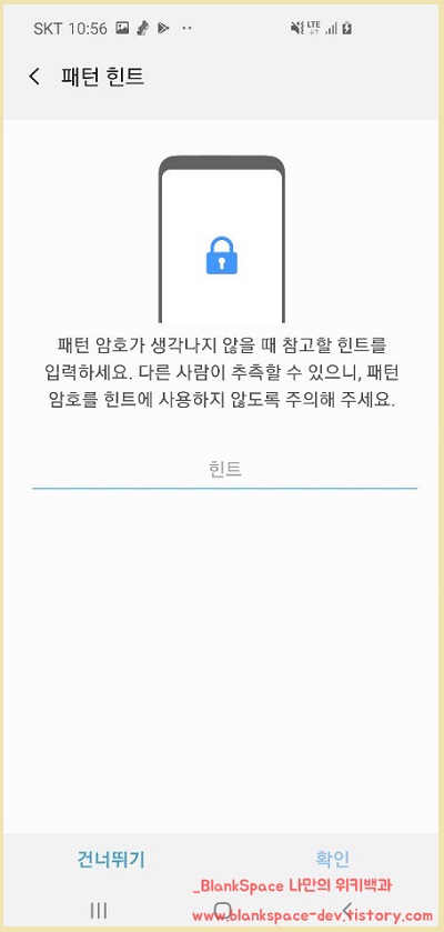 패턴 힌트는 굳이 설정하지 않아도 됩니다. 원하지 않으시면 건너뛰기를 눌러주세요.