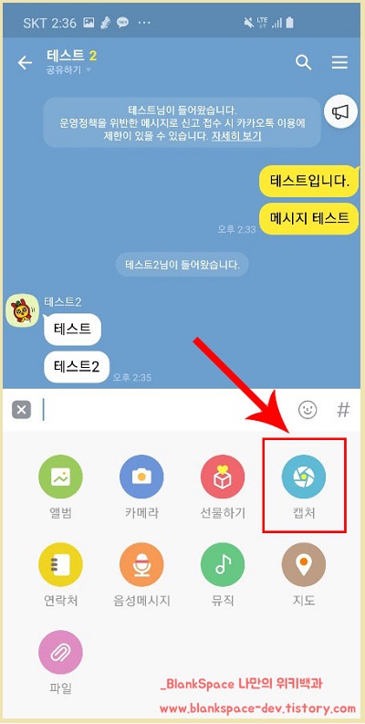 대화 캡쳐라는 것이 보이시죠? 이 탭을 눌러주세요!